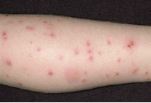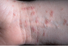 Η έντονη φαγούρα και τα εξανθήματα εμφανίζονται αρκετές εβδομάδες μετά τη μόλυνση. Η φαγούρα είναι εξαιρετικά ενοχλητική και συνήθως χειροτερεύει τη νύχτα. Συνήθως εμφανίζονται εξανθήματα στα δάκτυλα, στους καρπούς, στους αγκώνες, στα γεννητικά όργανα και τους γλουτούς. Θα πρέπει να συμβουλευτείτε τον γιατρό σας για την κατάλληλη αγωγή και να πλύνετε καλά με ζεστό νερό τα ρούχα, τις πετσέτες και τα σκεπάσματα.
