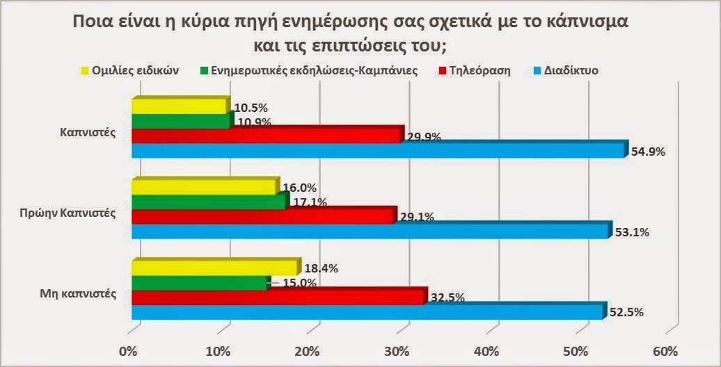 - Τέλος, το 70% των καπνιστών που συμμετείχαν στην έρευνα δεν επηρεάστηκαν από τις απαγορεύσεις του υπουργείου Υγείας.