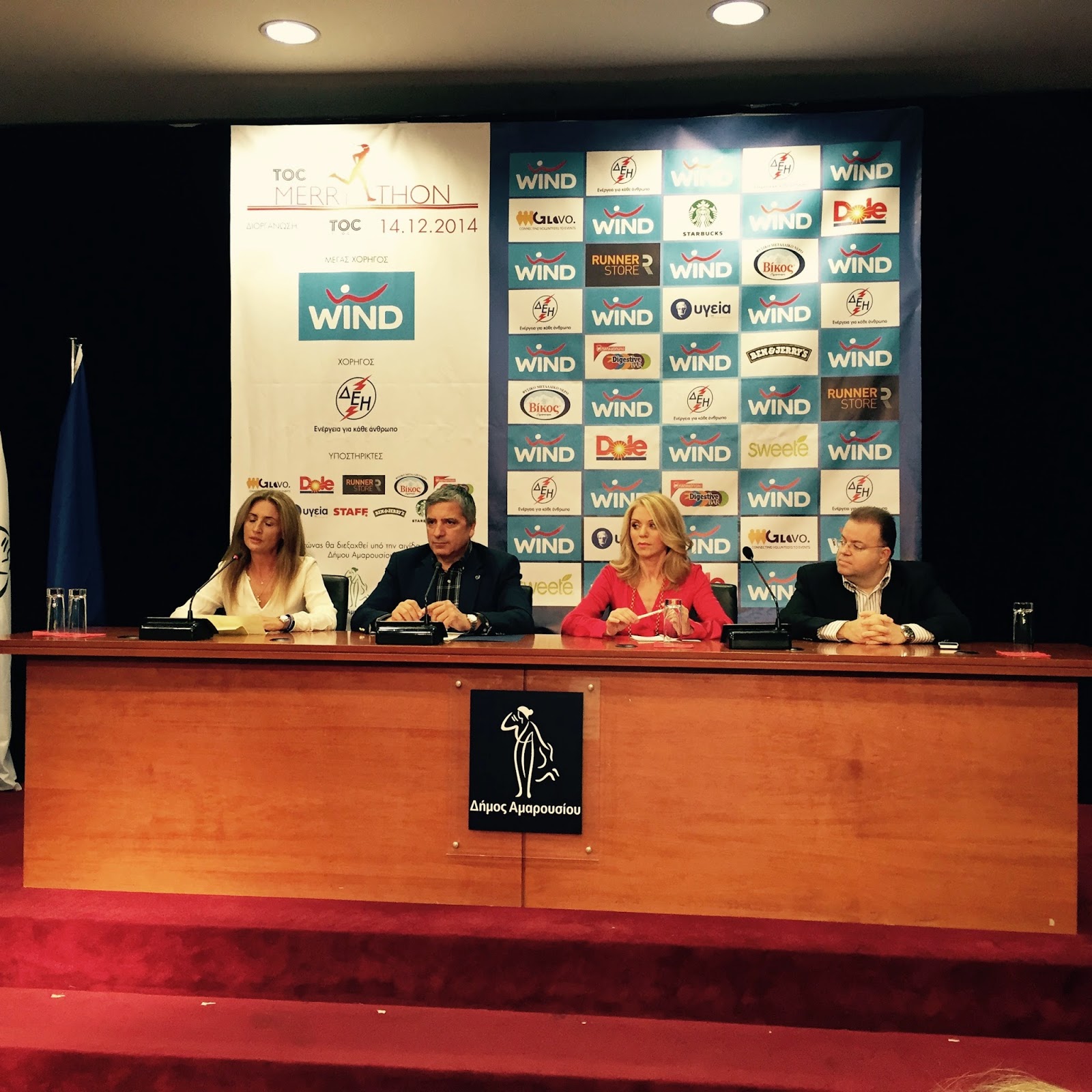 Την Κυριακή 14 Δεκεμβρίου τρέχουμε στο ΟΑΚΑ για καλό σκοπό, συνδυάζοντας τα οφέλη που προσφέρει η συμμετοχή μας σ’ ένα αγώνα δρόμου, με την ικανοποίηση της προσφοράς και της αλληλεγγύης προς τους συμπολίτες που έχουν ανάγκη, τόνισαν στη συνέντευξη τύπου που παραχώρησαν ο Δήμαρχος Αμαρουσίου κος Γιώργος Πατούλης, η εκδότρια, διευθύντρια του TheTOC.gr κα Έλλη Στάη , ο διευθυντής Εταιρικών Σχέσεων της Wind Hellas κος Γιώργος Τσαπρούνης και η κορυφαία μαραθωνοδρόμος Μαρία Πολύζου, ενόψει του αγώνα δρόμου 5 χ.λ.μ. “TheTOC MERRYTHON”.