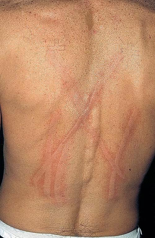 Στον ασυμπτωματικό που είναι και ο πιο συχνός, εμφανίζεται το εξάνθημα χωρίς ο ασθενής να αντιληφθεί το ερέθισμα, ή να βιώσει προηγουμένως κανένα σύμπτωμα (κνησμό).
