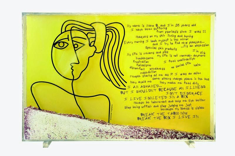 Στην έκθεση περιλαμβάνονται και 4 έργα Ελλήνων καλλιτεχνών που εμπνεύστηκαν μέσα από την προσωπική επαφή τους με ασθενείς με ψωρίαση, νεανική ιδιοπαθή αρθρίτιδα και νόσο του Crohn που ζουν στη χώρα μας και βιώνουν στην επαγγελματική, κοινωνική και προσωπική καθημερινότητά τους τον -άγνωστο και ενδεχομένως υποτιμημένο για την υπόλοιπη κοινωνία- αντίκτυπο της νόσου τους.