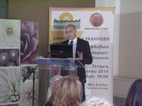 Στη συνέχεια ο κος Ευάγγελος Νικολόπουλος, Αγγειοχειρουργός, MD, MScΕνδαγγειακές Τεχνικές, αναφέρθηκε στους τρόπους αντιμετώπισης και θεραπείας των φλεβικών παθήσεων, παρουσιάζοντας όλα τα νεότερα δεδομένα και σύγχρονες τεχνικές χειρουργικής επέμβασης, αλλά και φαρμακευτικής αγωγής. Επίσης, δόθηκαν χρήσιμες συμβουλές πρόληψης στο κοινό, για όλες τις ηλικίες και για τα δύο φύλα. Τόνισε ιδιαίτερα τη σημασία της άμεσης αναζήτησης βοήθειας από τον ειδικό γιατρό με την εμφάνιση των πρώτων συμπτωμάτων, καθώς και της σωστής επικοινωνίας μεταξύ ασθενή και ιατρού για την εύρεση και εφαρμογή της καλύτερης δυνατής θεραπευτικής αγωγής.