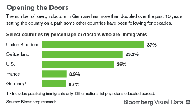 Τα στοιχεία του Bloomberg δείχνουν ότι η Ελλάδα είναι δεύτερη στην λίστα με τις ευρωπαϊκές χώρες που βλέπουν τους γιατρούς τους να ξενιτεύονται προκειμένου να εργαστούν στην Γερμανία.