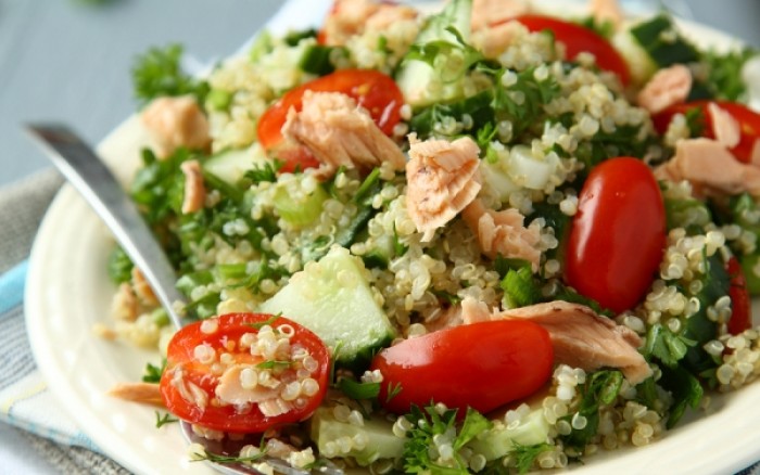 Κινόα: Μία κούπα μαγειρεμένης κινόα περιέχει πάνω από 8 γραμμάρια πρωτεΐνης, ενώ η μεγάλη περιεκτικότητά της σε ίνες θα σας κάνει να νιώσετε περισσότεροι πλήρεις (χορτασμένοι).
