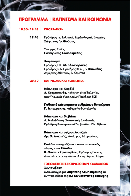 Η παρουσία σας είναι πολύτιμη και θα συμβάλει στην ευόδωση του τελικού στόχου, της πλήρους απαγόρευσης του καπνίσματος στους κλειστούς χώρους.