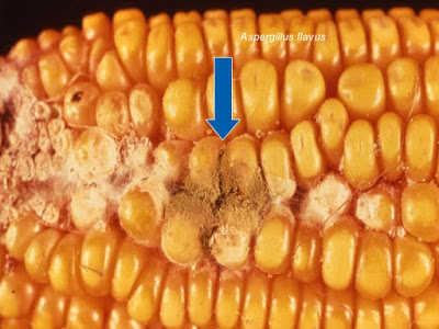 Η αφλατοξίνη είναι δηλητήριο που προκαλεί καρκίνο. Παράγεται από μύκητες (Aspergillus flavus και parasiticus) που αναπτύσσονται σε τρόφιμα ή σε ζωοτροφές ιδιαίτερα στο καλαμπόκι και στα φιστίκια.