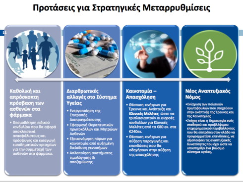 Μια σειρά από ολοκληρωμένες και τεκμηριωμένες προτάσεις για στρατηγικές μεταρρυθμίσεις, ως απάντηση του φαρμακευτικού κλάδου στην κρίση, παρουσιάστηκαν χθες από τον πρόεδρο του ΣΦΕΕ, Πασχάλη Αποστολίδη, σε ειδική εκδήλωση του συνδέσμου, ενόψει της σημερινής γενικής του συνέλευσης.