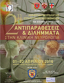 Οι Νευρολογικές Κλινικές των Στρατιωτικών Νοσοκομείων της Αθήνας, στα πλαίσια των εκπαιδευτικών και επιστημονικών τους δραστηριοτήτων, διοργανώνουν στις 1 & 2 Απριλίου 2016, στο Σαρόγλειο Μέγαρο (Λέσχη Αξιωματικών Ενόπλων Δυνάμεων) σε συνεργασία με την Ελληνική Εταιρεία Κεφαλαλγίας, τη 2η Πολυθεματική Διημερίδα με τίτλο