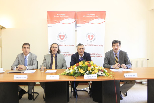 Στη σημερινή συνέντευξη τύπου, επ’ευκαιρία του ανωτέρω συνεδρίου, τα θέματα ανέπτυξαν: Δημήτριος Τούσουλης, Καθηγητής Καρδιολογίας Ιατρικής Σχολής Παν/μίου Αθηνών – Διευθυντής Α’ Πανεπιστημιακής Καρδιολογικής Κλινικής “Ιπποκράτειο” Γ.Ν.Α., Γεώργιος Ανδρικόπουλος, Διευθυντής Καρδιολογικής Κλινικής «Ερρίκος Ντυνάν» Hospital Center, Δημήτριος Ρίχτερ, Διευθυντής Β’ Καρδιολογικής Κλινικής Ευρωκλινικής Αθηνών και Κωνσταντίνος Τούτουζας, Αναπληρωτής Καθηγητής Καρδιολογίας Ιατρικής Σχολής Παν/μίου Αθηνών, Α’ Πανεπιστημιακή Καρδιολογική Κλινική “Ιπποκράτειο” Γ.Ν.Α.