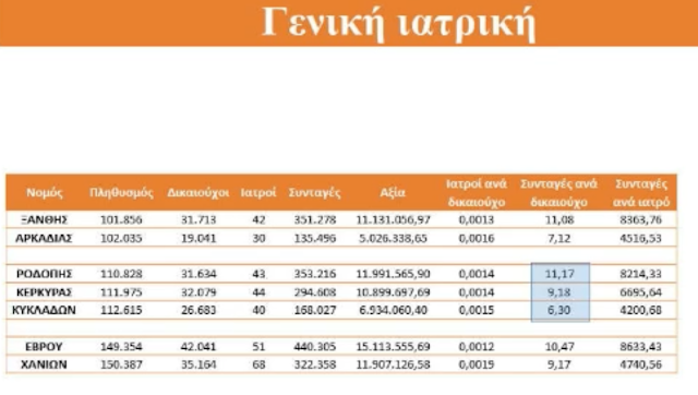 Είναι δυνατόν αναρωτήθηκε ο πρόεδρος να έχουμε για την ίδια παροχή 6 συνταγές στον νομό Κυκλάδων και 11 στο νομό Ροδόπης;