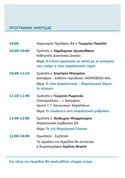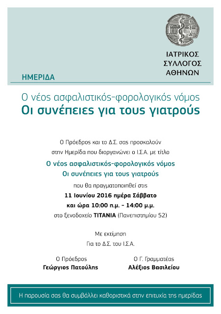 Πρόσκληση σε Ημερίδα ΙΣΑ με θέμα: Ο ΝΕΟΣ ΑΣΦΑΛΙΣΤΙΚΟΣ-ΦΟΡΟΛΟΓΙΚΟΣ ΝΟΜΟΣ – ΟΙ ΣΥΝΕΠΕΙΕΣ ΓΙΑ ΤΟΥΣ ΓΙΑΤΡΟΥΣ Σάββατο 11/6 Iatrika Nea 10 Ιούν 2016 Ειδήσεις Κοινοποίηση tweet Πηγή: medlabgr.blogspot.com Εκδήλωση ΙΣΑ 2016-06-10 Iatrika Nea Διεύθυνση: Ηροδότου 31, Μαρούσι, Ελλάδα Κοινοποίηση tweet