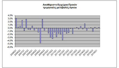 Αυτό πρακτικά σημαίνει ότι η ελληνική οικονομία βρίσκεται σε ύφεση της τάξης του 0,75% το πρώτο εξάμηνο του έτους ενώ, αντίθετα, το πρώτο εξάμηνο του 2015 «έτρεχε» με ρυθμούς ανάπτυξης της τάξης του 1,4%.