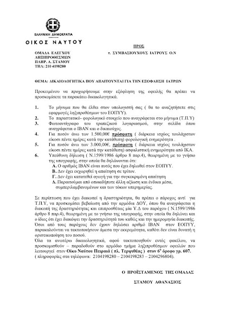 Επισυνάπτεται η ανακοίνωση με τα δικαιολογητικά από τον Οίκο Ναύτου.