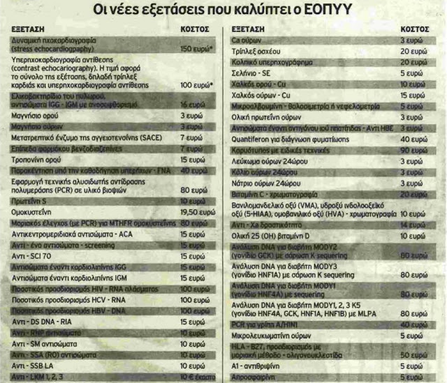 Μόνο τη συμμετοχή τους θα πληρώνουν στο εξής οι ασφαλισμένοι σε μια σειρά από διαγνωστικές εξετάσεις, οι οποίες δεν καλύπτονταν από τον ΕΟΠΥΥ.