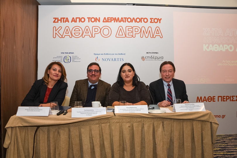 Με κεντρικό μήνυμα «Ζήτα από τον Δερματολόγο σου καθαρό δέρμα» και με αφορμή την Παγκόσμια Ημέρα Ψωρίασης (29η Οκτωβρίου), η Novartis Hellas ανακοίνωσε στη σημερινή Συνέντευξη Τύπου την έναρξη της παγκόσμιας Εκστρατείας Ενημέρωσης και Ευαισθητοποίησης κοινού για την Ψωρίαση «Ζήτα από τον Δερματολόγο σου Καθαρό Δέρμα» πλέον και στην Ελλάδα. Η εκστρατεία τελεί υπό την αιγίδα της Ελληνικής Δερματολογικής και Αφροδισιακής Εταιρείας και την υποστήριξη του Πανελληνίου Συλλόγου Ασθενών με Ψωρίαση και Ψωριασική αρθρίτιδα «Επιδέρμια». Η συγκεκριμένη πρωτοβουλία, η οποία πραγματοποιείται ήδη σε πολλές χώρες, συμπεριλαμβανομένων της Γερμανίας, της Ελβετίας, της Σουηδίας και της Αυστρίας, έχει ως στόχο να ενθαρρύνει τα άτομα με ψωρίαση να έρθουν σε επικοινωνία με τον δερματολόγο τους, προκειμένου να συζητήσουν τις θεραπευτικές επιλογές και να καθορίσουν τους τρόπους με τους οποίους μπορούν να βελτιώσουν την ποιότητα ζωής τους.