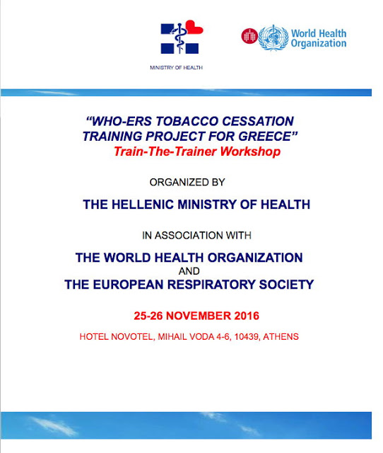 Σε αυτά τα πλαίσια η Γενική Γραμματεία Δημόσιας Υγείας του Υπουργείου Υγείας υλοποιεί σε συνεργασία με τον Παγκόσμιο Οργανισμό Υγείας (WHO) και την Ευρωπαϊκή Πνευμονολογική Εταιρεία (ERS) εκπαιδευτικό πρόγραμμα με τίτλο: «Πρόγραμμα Διακοπής Καπνίσματος».