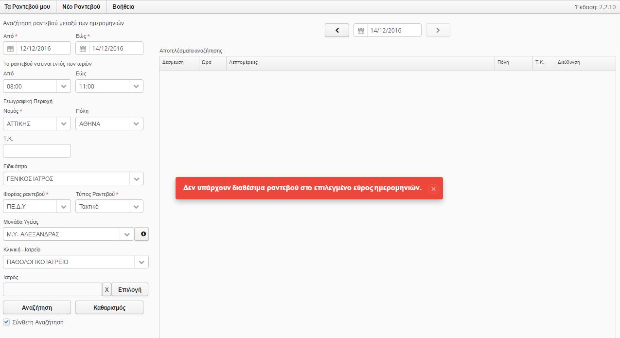 Έχετε την δυνατότητα να κάνετε και πιο σύνθετη αναζήτηση. Πέρα από τα στοιχεία που έχετε συμπληρώσει στο βήμα 3 μπορείτε να επιλέξετε συγκεκριμένη μονάδα υγείας και γιατρό.