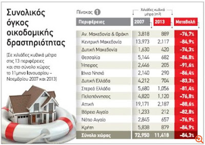 Σύμφωνα με τα επίσημα στοιχεία της ΕΛΣΤΑΤ, από την αρχή της οικονομικής κρίσης, τα 150 και άνω επαγγέλματα γύρω από τον χώρο της οικοδομής, ατμομηχανής στο τραίνο της ανάπτυξης στην προμνημονιακή εποχή, γνώρισαν μειώσεις στα εισοδήματά τους ανάλογες με την πτώση του κλάδου, πτώση που κυμάνθηκε από 70 έως και 80+% σωρευτικά.