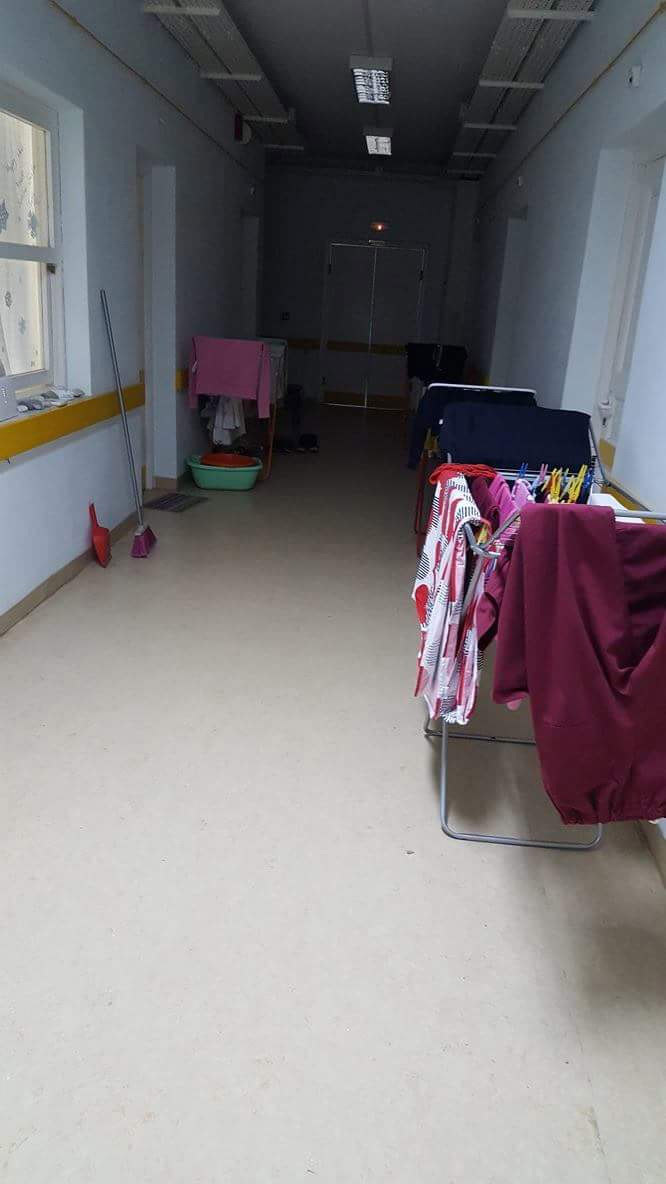 Όπως μπορείτε να παρατηρήσετε στο φωτογραφικό υλικό που δημοσιεύει το «ΘΕΜΑ», τα πλυμένα ρούχα απλώνονται στους διαδρόμους του κτιρίου ή στην ταράτσα του, εφόσον το επιτρέπουν οι καιρικές συνθήκες.