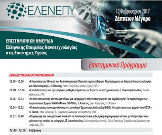 Η ΕΛΕΝΕΠΥ (Ελληνική Εταιρία Νανοτεχνολογίας Επιστημών Υγείας) έχει ένα πολύ πλούσιο και σημαντικό πρόγραμμα παρουσιάσεων την Κυριακή 12 Φεβρουαρίου 10.00 – 14.00.