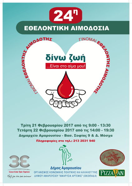 24η Εθελοντική Αιμοδοσία Δήμου Αμαρουσίου «Δίνω Ζωή… Είναι στο Αίμα μου»