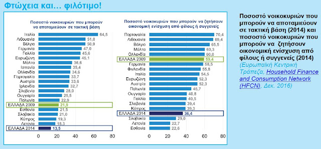 “Για τη μεγάλη μάζα των νοικοκυριών, πάντως, οι προκλήσεις από την χειροτέρευση των κοινωνικοοικονομικών τους χαρακτηριστικών αντιμετωπίζονται χωρίς να προκαλούνται συστημικές ασυνέχειες, όπως προκύπτει από την Έρευνα Χρηματοδότησης και Κατανάλωσης Νοικοκυριών, που διενεργεί περιοδικά, για όλες τις χώρες της Ευρωζώνης, η Ευρωπαϊκή Κεντρική Τράπεζα.