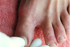 Είναι μία μυκητισιακή μόλυνση που προκαλεί ξεφλούδισμα, ερεθισμό, φαγούρα, κάψιμο και σε κάποιες περιπτώσεις τη δημιουργία φουσκάλας ή πληγής. Το πόδι του αθλητή μεταδίδεται με απευθείας επαφή ή περπατώντας ξυπόλυτοι σε περιοχές όπως τα αποδυτήρια γυμναστηρίων (εξ ου και η ονομασία) και οι πισίνες. Οι μύκητες στη συνέχεια αναπτύσσονται στα παπούτσια, και ειδικά στα στενά παπούτσια που δεν αφήνουν το πόδι να αναπνεύσει. Ευνοούνται από την υγρασία, οπότε η σωστή υγιεινή των ποδιών και τα κατάλληλα παπούτσια είναι σημαντικά στοιχεία για την πρόληψη και την αντιμετώπισή τους. Το πόδι του αθλητή συνήθως αντιμετωπίζεται με τοπικά αντιμυκητησιακά σκευάσματα ή και με χορήγηση φαρμακευτικής αγωγής από το στόμα σε πιο σοβαρές περιπτώσεις.