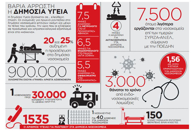 Μια απλή έρευνα μέσω του τετραψήφιου αριθμού 1535 αρκεί προκειμένου να διαψευστεί τόσο ο πρωθυπουργός με τις «εμβληματικές» μεταρρυθμίσεις της κυβέρνησης στην Υγεία όσο και η πολιτική ηγεσία του υπουργείου Υγείας που, κυρίως διά στόματος Παύλου Πολάκη, διατυμπανίζει την «ανάπτυξη» στο χώρο της Υγείας.
