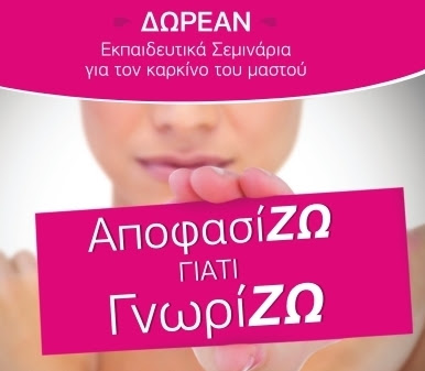 Ο Πανελλήνιος Σύλλογος Γυναικών με Καρκίνο Μαστού «Άλμα Ζωής» πραγματοποιεί νέο κύκλο δωρεάν ενημερωτικών σεμιναρίων «Αποφασίζω γιατί Γνωρίζω» για γυναίκες που έχουν βιώσει ή βιώνουν εμπειρία καρκίνου μαστού.