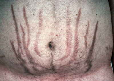 • Μελαχρωστικές ραβδώσεις στην κοιλιά, μηρούς, γλουτούς, βραχίονες και μαστούς