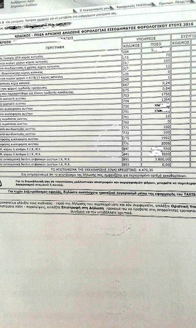 Για όλα τα παραπάνω καλείται να πληρώσει 4.470,30 ευρώ ( δείτε τη σχετική εικόνα από την εκκαθάριση της δήλωσης).