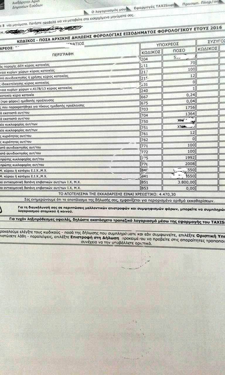 Για όλα τα παραπάνω καλείται να πληρώσει 4.470,30 ευρώ ( δείτε τη σχετική εικόνα από την εκκαθάριση της δήλωσης).