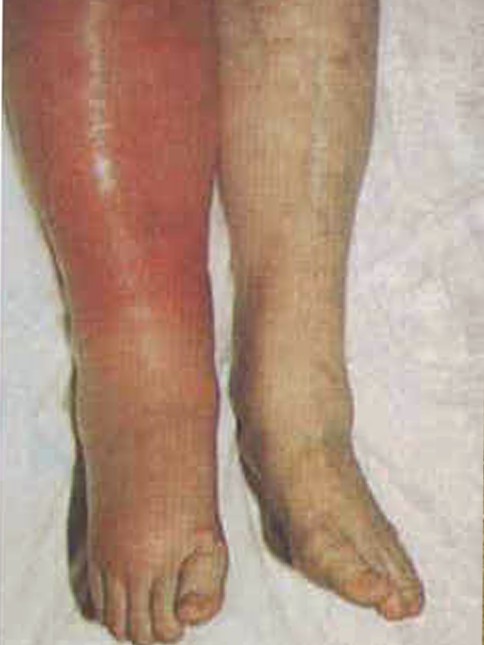 Το κύριο σύμπτωμα είναι το οίδημα του μέλους που μπορεί να συνδυάζεται και με άλγος. Άλλες εκδηλώσεις είναι η ερυθρότητα, η γενικότερη αίσθηση δυσφορίας του μέλους, και σπανιότερα ο πυρετός. Τα συμπτώματα αυτά λαμβάνονται σοβαρά υπ΄ όψιν, στους ασθενείς με αυξημένους προδιαθεσικούς παράγοντες. Στις παραμελημένες περιπτώσεις παρατηρείται μεγάλο οίδημα του σκέλους, κυάνωση, φυσαλίδες και εκτεταμένες νεκρώσεις του δέρματος.