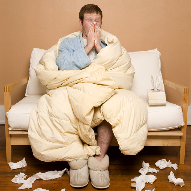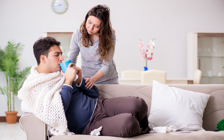 Την επόμενη φορά που θα δείτε τον άντρα σας να κάνει σαν ένα παραπονιάρικο αγόρι λόγω ενός φτερνίσματος, να σκέφτεστε ότι έτσι το βιώνει, δραματικά. Για χάρη τής σχέσης σας, φροντίστε τα μαξιλάρια του να είναι αφράτα, σκεπάστε τα πόδια του με μια μαλακή κουβέρτα, δώστε του μια ατελείωτη ποσότητα χαρτομάντιλα και φυσήξτε να κρυώσει το καυτό φλιτζάνι τσάι.