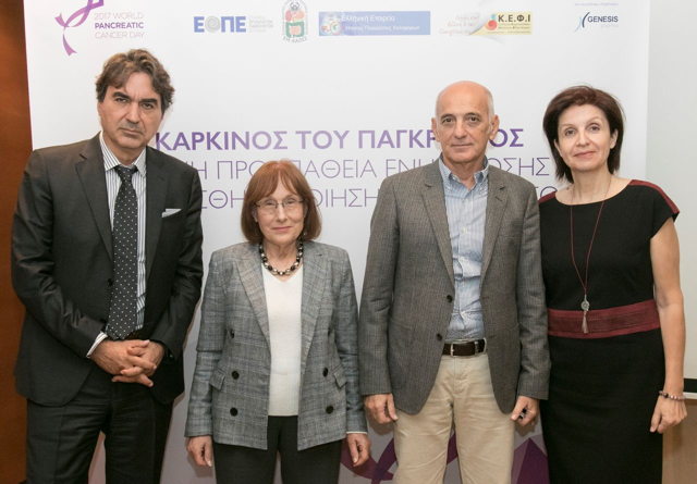 Ο Δρ. Ιωάννης Μπουκοβίνας, MD, PhD, PharmaD, Παθολόγος-Ογκολόγος, Πρόεδρος της ΕΟΠΕ και μέλος του ΕΜ-ΚΑΠΕΣ, Επιστημονικός Υπεύθυνος Ογκολογικής Μονάδας, «Βιοκλινική» Θεσσαλονίκης ανέφερε: «Τα έντονα συμπτώματα του παγκρεατικού καρκίνου παρουσιάζονται συνήθως αργά, με αποτέλεσμα περισσότεροι από τους μισούς ασθενείς να διαγιγνώσκονται αφού έχουν κάνει μετάσταση και αυτό δυσχεραίνει πολύ την αντιμετώπισή του. Από τη δεκαετία του ’90 και μετά έχουν γίνειπολλές μελέτες για θεραπείες στον προχωρημένο καρκίνο του παγκρέατος, όμως το ποσοστό επιτυχίας δεν είναι μεγάλο. Ωστόσο, την τελευταία τετραετία υπάρχουν αισιόδοξες εξελίξεις, που προέρχονται από έναν νεότερο χημειοθεραπευτικόπαράγοντα ο οποίος έχει στοχευμένη δράση στα κύτταρα του στρώματος του παγκρέατος με τη βοήθεια της νανοτεχνολογίας και έχει ένα αποδεκτό προφίλ ασφάλειας, αλλά και από μια νέα θεραπεία δεύτερης γραμμής που εγκρίθηκε πρόσφατα στην Αμερική και την Ευρώπη με ικανοποιητικά αποτελέσματα σε αρκετά προθεραπευμένους ασθενείς. Επομένως, σήμερα, οι θεραπευτικές μας επιλογές σε σχέση με το παρελθόν είναι σαφώς περισσότερες και καλύτερες, ενώ σημειώνεται και ερευνητική πρόοδος. Όσο αυξάνεται η ενημέρωση γύρω από τον παγκρεατικό καρκίνο, ελπίζουμε πως θα φέρουμε αποτελέσματα και στην πιο έγκαιρη ανίχνευσή του».