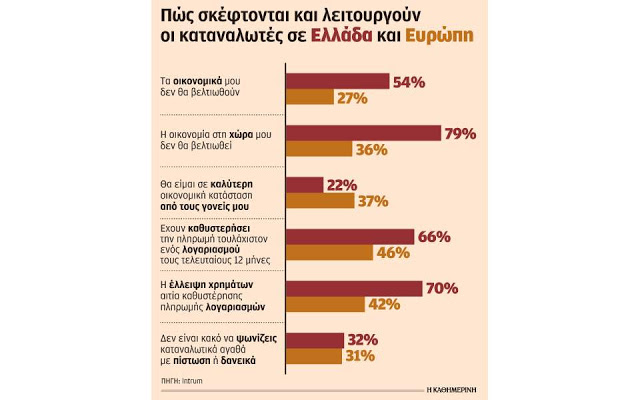 Δύο στους τρεις Έλληνες καταναλωτές καθυστέρησαν τους δώδεκα τελευταίους μήνες να πληρώσουν εγκαίρως κάποια από τις υποχρεώσεις τους, με την κύρια αιτία για τη συντριπτική πλειονότητα αυτών, το 70%, να είναι η έλλειψη χρημάτων.