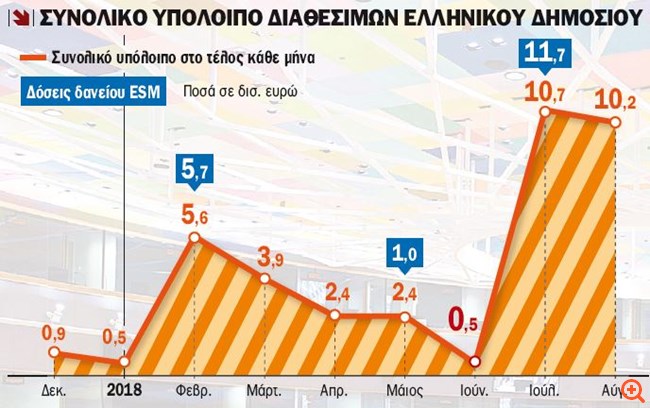 Αναφορικά με το μέλλον, με βάση τον υφιστάμενο σχεδιασμό για την παροχή χρηματοδότησης από το δάνειο του ESM, υπολογίζεται ότι, όταν θα ολοκληρωθεί το πρόγραμμα, η Ελλάδα θα έχει διαθέσιμα 10,2 δισ. ευρώ, τα οποία θα καλύπτουν τις ανάγκες της για τους επόμενους 10 μήνες μετά το τέλος του. Και σε αυτό το σημείο επαναλαμβάνονται στο κείμενο της Έκθεσης Συμμόρφωσης οι εκτιμήσεις/παραινέσειςότι το “μαξιλάρι” αυτό μπορεί να αυξηθεί μέσω της πρόσβασης στις αγορές, μέσω διαχείρισης των διαθεσίμων του Δημοσίου, μέσα από πρόσθετα έσοδα ιδιωτικοποιήσεων και μέσα από τα έσοδα από τη διακράτηση κερδών ομολόγων (ΑNFA – SMP).