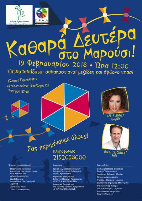 Ένα ανεπανάληπτο παραδοσιακό γλέντι στήνει ο Δήμος Αμαρουσίου ανήμερα την Καθαρά Δευτέρα με προσκεκλημένους μικρούς και μεγάλους για να γιορτάσουμε όλοι μαζί και να υποδεχτούμε τη Σαρακοστή.