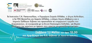 Αυτό ήταν το κεντρικό μήνυμα της ημερίδαςμε τίτλο «Πρόληψη του καρκίνου, με έμφαση στον καρκίνο του τραχήλου της μήτρας», που διοργάνωσαν τοΙνστιτούτο Γ.Ν Παπανικολάου, σε συνεργασία με τηνΠ. Ε. Εύβοιας της Περιφέρειας Στερεάς Ελλάδας, τονΔήμο Χαλκιδέων, τονΔήμο Κύμης – Αλιβερίου, την5η Υγειονομική Περιφέρεια Στερεάς Ελλάδας- Θεσσαλίας, τονΙατρικό Σύλλογο Ευβοίας και το Γενικό Νοσοκομείο Χαλκίδας, στην Χαλκίδα.