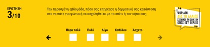 Μπείτε στο www.destoallios.gr για να συμπληρώσετε το σύντομο ερωτηματολόγιο των 10 απλών ερωτήσεων , αλλά και για να μάθετε περισσότερα για την ψωρίαση και να δημιουργήσετε το δικό σας μήνυμα ευαισθητοποίησης για τη μη μεταδοτικότητά της.