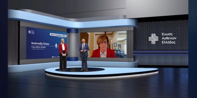 Η Ένωση Ασθενών Ελλάδος πραγματοποίησε σήμερα με μεγάλη επιτυχία διαδικτυακή Συνέντευξη Τύπου, με αφορμή την Παγκόσμια Ημέρα Υγείας. Στο πλαίσιο της εκδήλωσης, η Πρόεδρος Κατερίνα Κουτσογιάννη παρουσίασε τις κύριες πρωτοβουλίες της εθνικής συνομοσπονδίας των συλλόγων ασθενών. Σε αυτές περιλαμβάνονται συνολικά πάνω από 120 δημόσιες παρεμβάσεις και 180 συναντήσεις στο πλαίσιο της προάσπισης των δικαιωμάτων των ασθενών, ενημερωτικές εκδηλώσεις και καμπάνιες ευαισθητοποίησης για θέματα υγείας, εκπαιδευτικά σεμινάρια για την ανάπτυξη δεξιοτήτων των συλλόγων, το Πανελλήνιο Συνέδριο Ασθενών, καθώς και ο σχεδιασμός ερευνητικών έργων για την αιμοδοσία, τον εμβολιασμό, την εγγραμματοσύνη υγείας και τη νοσοκομειακή φαρμακευτική δαπάνη.