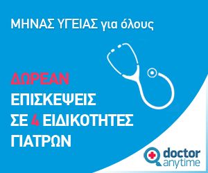 Απρίλιος 2013 – «ΜΗΝΑΣ ΥΓΕΙΑΣ για όλους» με ΔΩΡΕΑΝ επισκέψεις σε 4 ειδικότητες γιατρών Με αφορμή την Παγκόσμια Ημέρα Υγείας (7/4), το doctoranytime.gr ξεκινάει την εκστρατεία προληπτικής ιατρικής «ΜΗΝΑΣ ΥΓΕΙΑΣ για όλους» και σε συνεργασία με τους συνεργάτες γιατρούς προσφέρει δωρεάν ιατρικές επισκέψεις σε 4 ειδικότητες: καρδιολόγο, ουρολόγο, δερματολόγο & …