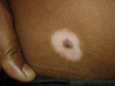 ΠερισσότεραΤι είναι η ελιά (σπίλος) που περιβάλλεται από λευκή στεφάνη; Μπορεί να σχετίζεται με λεύκη; (Sutton ή Halo)