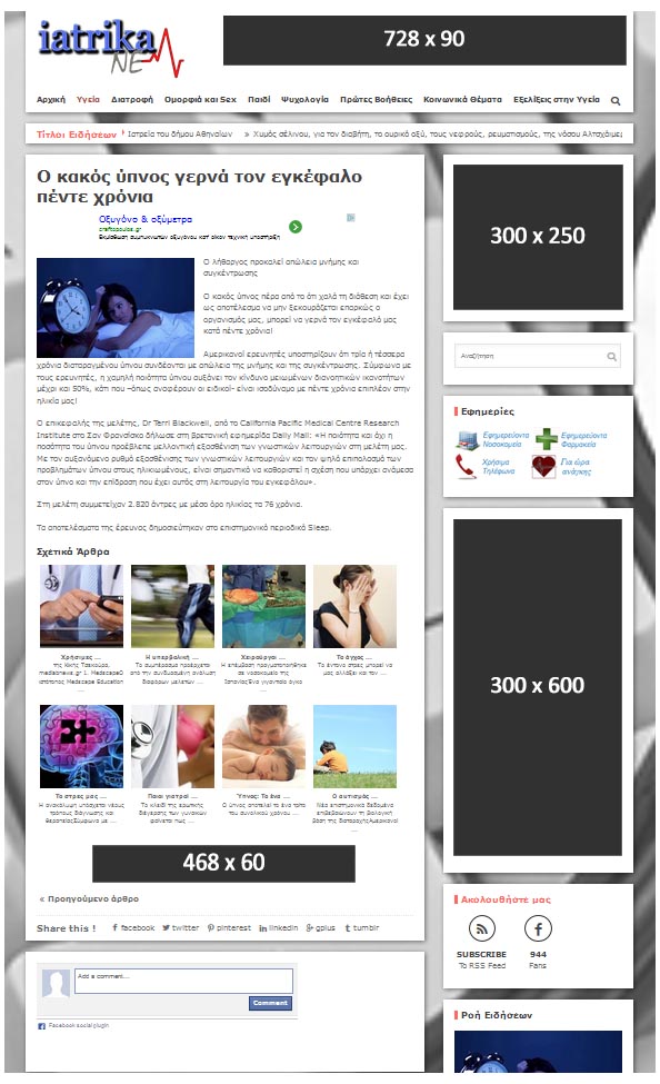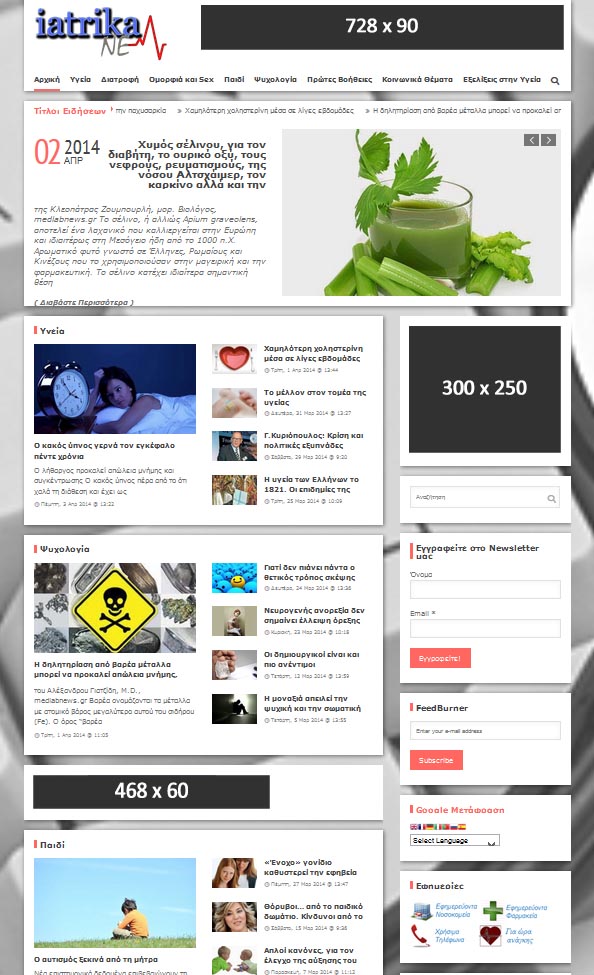 - Στοχευμένη διαφήμιση. Αν η επιχείρηση ή το προϊόν σας σχετίζεται με τη υγεία, δεν θα μπορούσατε στοχεύσετε καλύτερα το κοινό σας. Η διαφήμιση στο iatrikanea.gr απευθύνεται ακριβώς στο δικό σας target group.