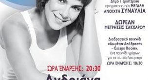 ΠερισσότεραΔωρεάν μετρήσεις Σακχάρου και Συναυλία Ανδριάννας Μπαμπαλη από την ΜΚΟ Με Οδηγό το Διαβήτη και τον Δήμο Περιστερίου