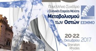 «Αγάπησε τα οστά σου, προστάτεψε το μέλλον σου» 20 Οκτωβρίου: Παγκόσμια Ημέρα Οστεοπόρωσης 2017 Το 25ο Πανελλήνιο Συνέδριο της Ελληνικής Εταιρείας Μελέτης Μεταβολισμού των Oστών (E.E.M.M.O), έχει σαν σκοπό την υψηλού επιπέδου επιστημονική ενημέρωση και ανταλλαγή απόψεων μεταξύ ιατρών διαφόρων ειδικοτήτων, πάνω στις τρέχουσες εξελίξεις που αφορούν τα μεταβολικά νοσήματα των οστών, με συμμετοχή δύο συγγενών επιστημονικών εταιρειών, …