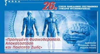«Προηγμένη Φυσικοθεραπεία. Αποκατάσταση και Ποιότητα Ζωής» Οι φυσικοθεραπευτές της χώρας μας πραγματοποιούν το κορυφαίο, ετήσιο, επιστημονικό τους συνέδριο, στις 25…