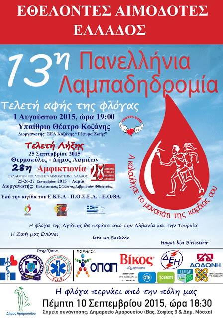 Πέμπτη 10 Σεπτεμβρίου 2015, ώρα 18:30, Δημαρχείο Αμαρουσίου Τη Φλόγα της Αγάπης υποδέχεται ο Δήμος Αμαρουσίου στη 13ης Πανελλήνια Λαμπαδηδρομία Εθελοντών Αιμοδοτών Ελλάδος, ενισχύοντας και προωθώντας την εθελοντική προσφορά και αλληλεγγύη προς το συνάνθρωπό μας. Η Φλόγα θα αφιχθεί στο Μαρούσι την Πέμπτη 10 Σεπτεμβρίου 2015 και ώρα …