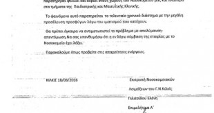 Σε συνέχεια της ενημέρωσή σας σας αποστέλλω και το πόρισμα επιτροπής λοιμώξεων του νοσοκομείου μας το οποίο και παρέδωσα σήμερα στον υπουργό υγείας κύριο Α.Ξανθό κατά την επίσκεψή του στο νοσοκομείο μας το οποίο επιβεβαιώνει επίσημα τα όσα καταγγελόμενα προηγήθηκαν. Σας ευχαριστώ ολόψυχα για την στήριξη στο νοσοκομείο μας. ΠΡΟΕΔΡΟΣ Ν.Τ. ΑΔΕΔΥ ΚΙΛΚΙΣ Γ.ΓΡΑΜΜΑΤΕΑΣ ΣΩΜΑΤΕΙΟΥ ΕΡΓΑΖΟΜΕΝΩΝ ΓΕΝΙΚΟΥ ΝΟΣΟΚΟΜΕΙΟΥ ΚΙΛΚΙΣ ΚΑΛΕΜΚΕΡΙΔΗΣ ΑΧΙΛΛΕΑΣ Πηγή: medlabgr.blogspot.com
